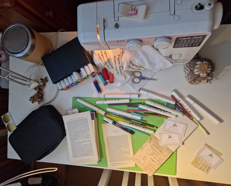 Accanto a questa passione per il Caviardage, ho sempre coltivato un grande amore per il cucito. Grazie a questa arte manuale, ho realizzato e venduto i miei lavori in vari mercatini locali. Mi piace l'idea di trasformare stoffe e fili in oggetti unici, che raccontano storie attraverso la bellezza del fatto a mano. Dai piccoli accessori ai capi d'abbigliamento, ogni creazione è per me un'occasione per mettere in gioco la mia creatività, unita alla precisione e alla cura del dettaglio.